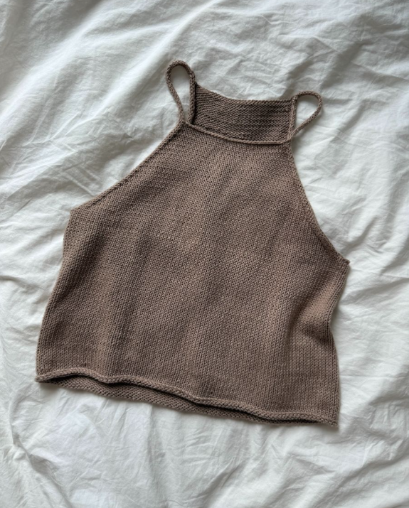 Den brune Audrey Top er strikket i Mandarin Naturell fra Sandnes Garn i fargen Eikenøtt [3161].