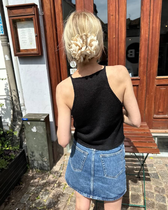 Den sorte Audrey Top er strikket i Hør Organic fra Isager i fargen Ink.