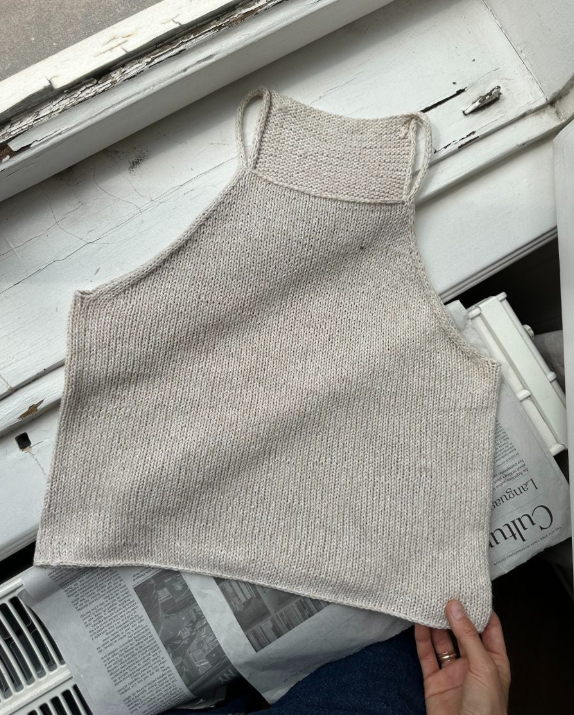 Den hvite Audrey Top er strikket i Line fra Sandnes Garn i fargen Kitt [1015].