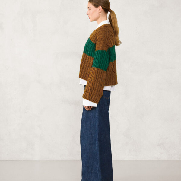 Oppskrift på ensfarget Brady Sweater med høy hals medfølger.