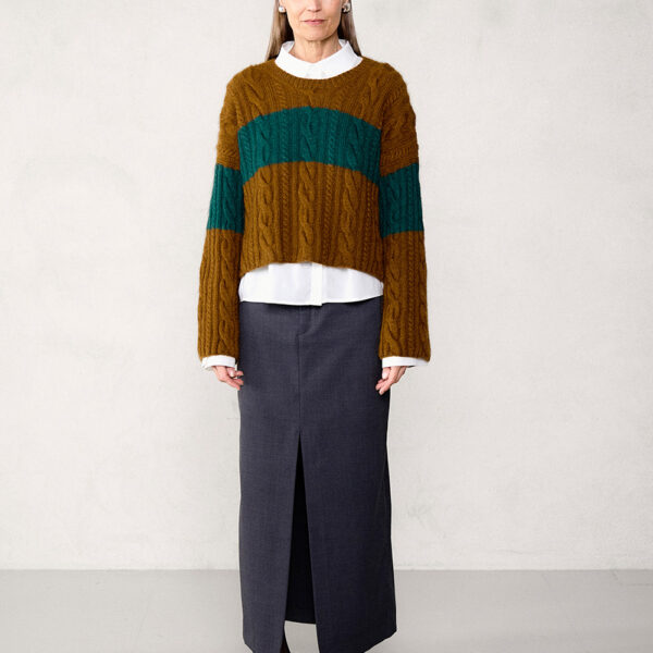 Brady Sweater i Sunday og Tynn Silk Mohair – en myk og elegant høyhalset genser som strikkes ovenfra og ned med én tråd av hver kvalitet. Den har en tidløs, ensfarget look og et vakkert skulderparti formet med european shoulder-teknikk. Perfekt som et lunt hverdagsplagg som også kler finere anledninger.