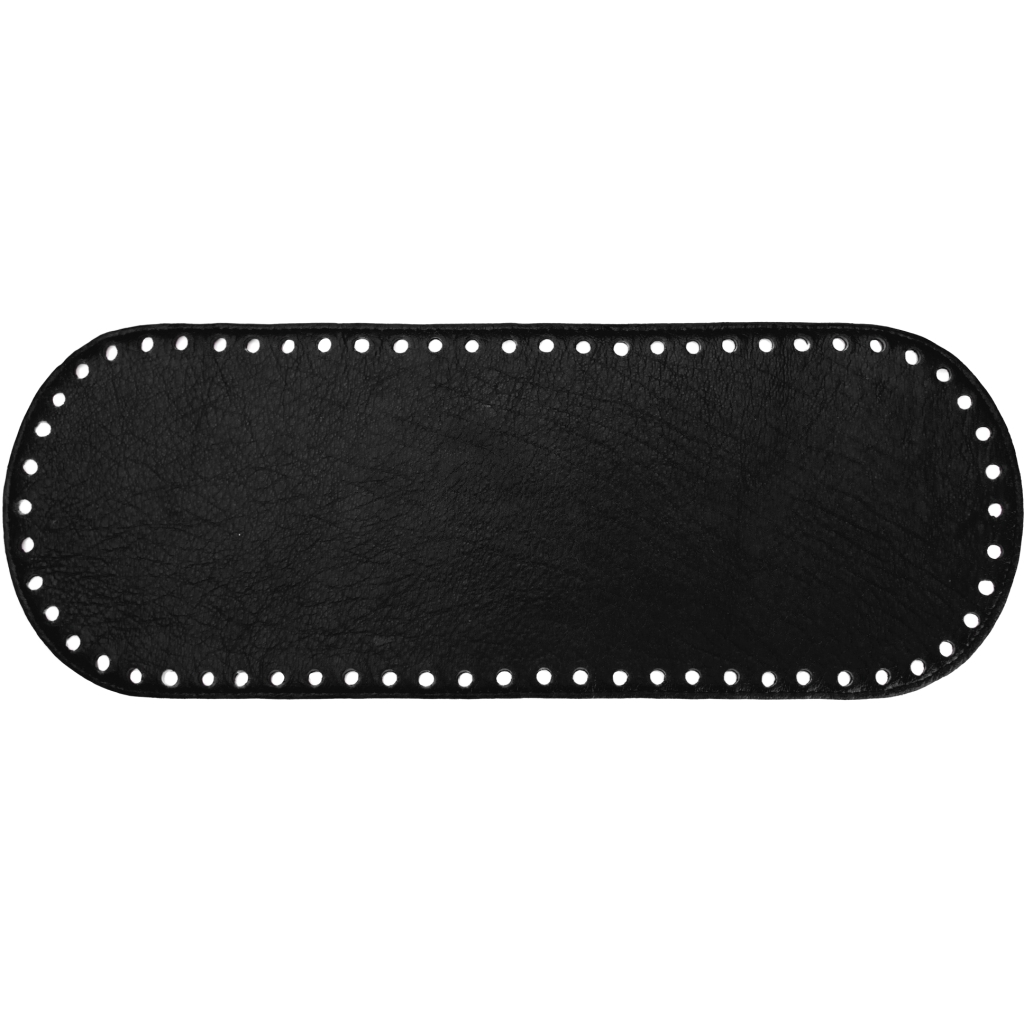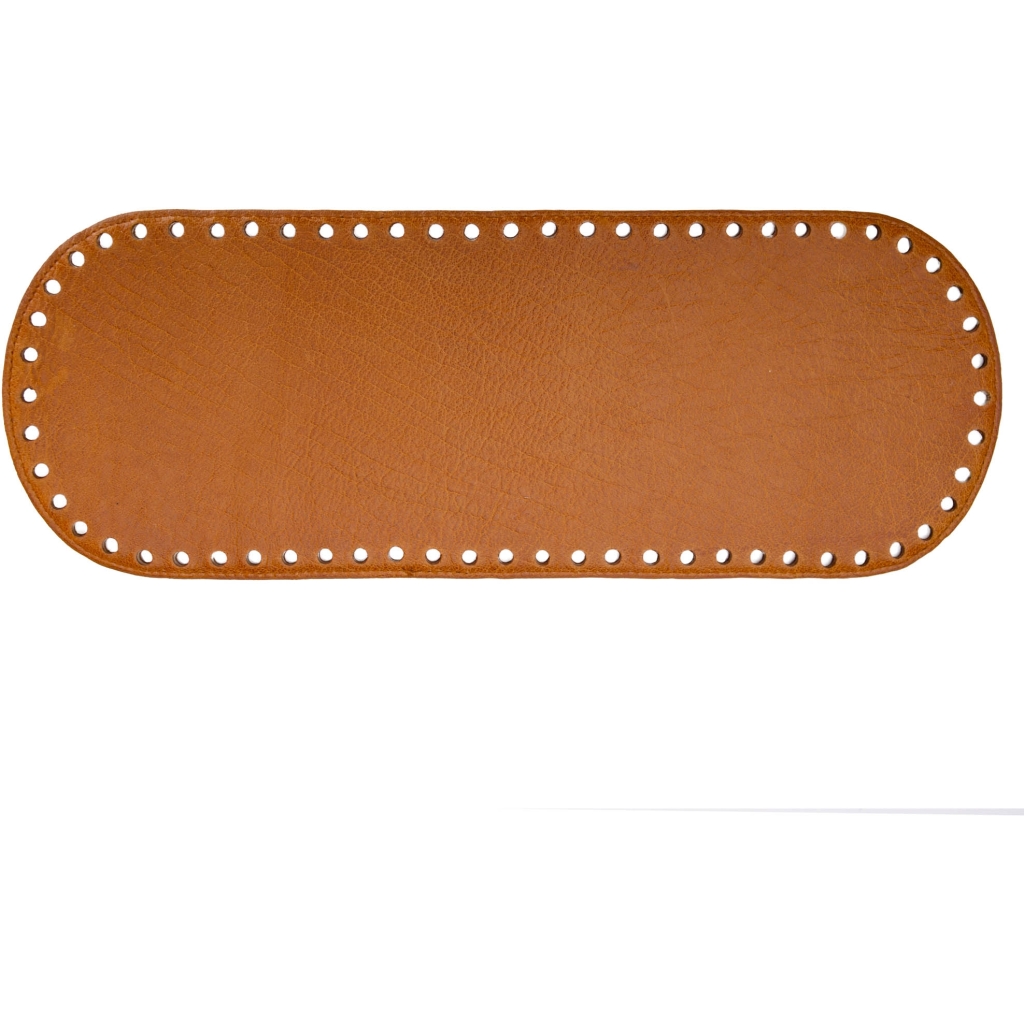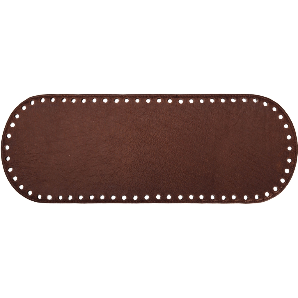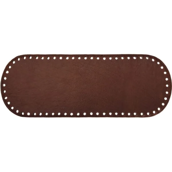 Bunnen er laget i høykvalitets ekte skinn og har ferdig utstansede hull, noe som gjør det enkelt å feste den til strikke-, hekle- eller syprosjekter. Den romslige størrelsen gir god stabilitet og sikrer at selv større kreasjoner står vakkert og varer i mange år.