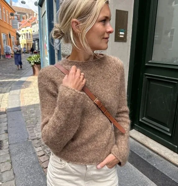 Ivy Sweater strikkes ovenfra og ned i ett stykke. Bærestykket formes først med skulderøkninger, deretter med ermeøkninger, og til slutt med raglanøkninger. Halsutskjæringen formes med vendepinner (forkortede pinner). Ermene strikkes rundt med strømpepinner eller med Magic Loop-teknikk.
