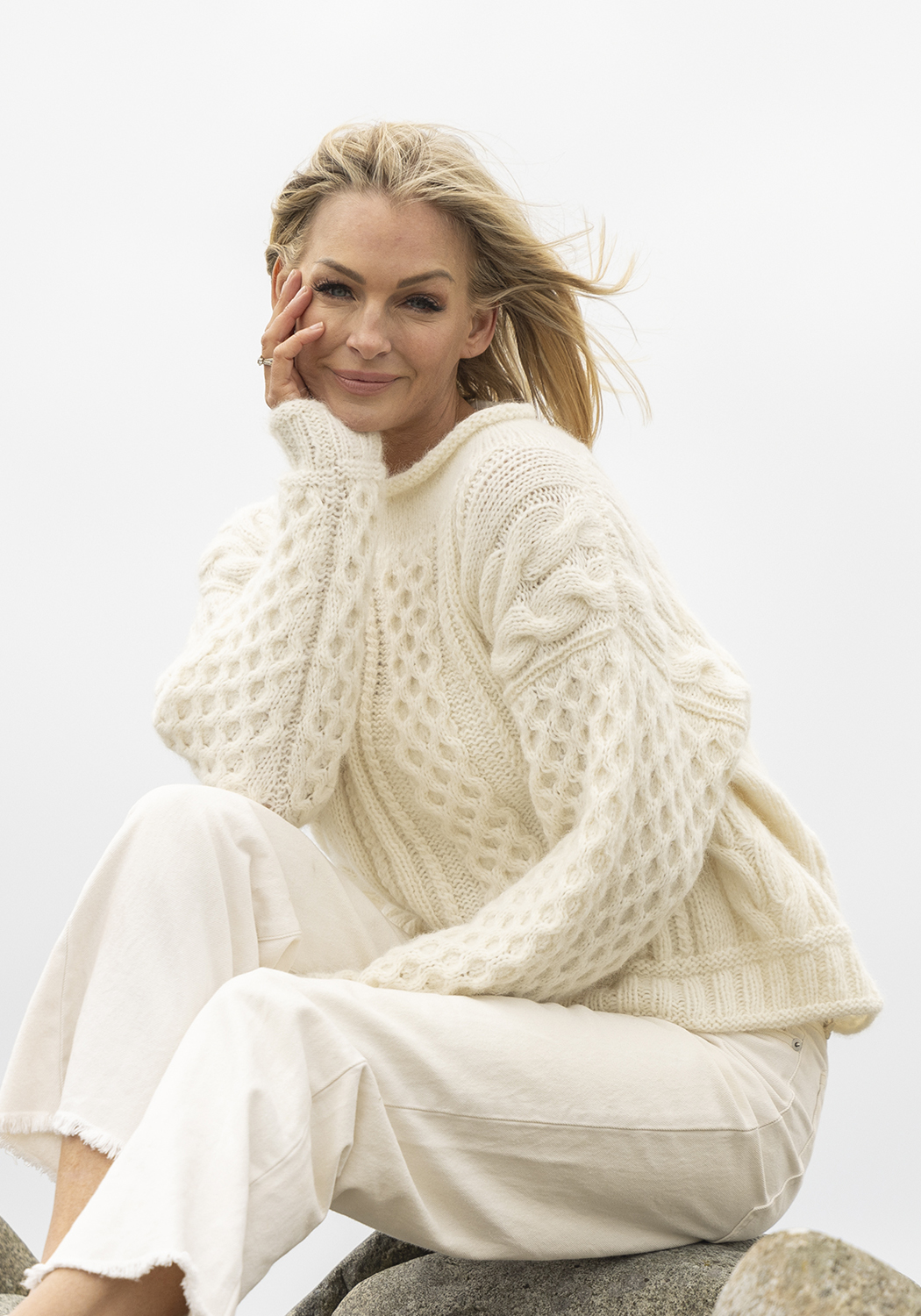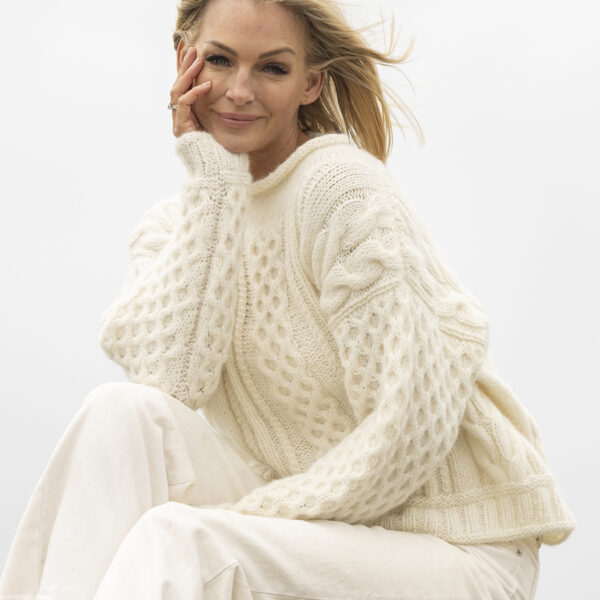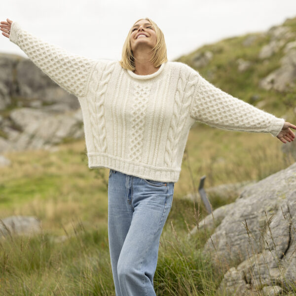 Strikkefasthet: 15 m glattstrikk i bredden på pinne nr 6 eller 7 måler ca 10 cm.