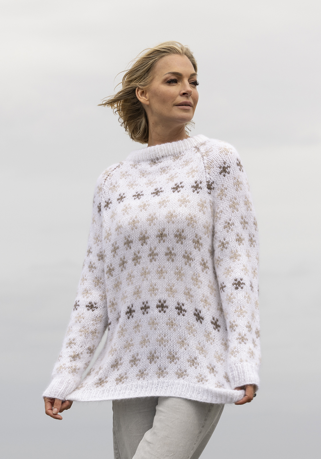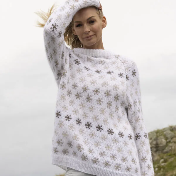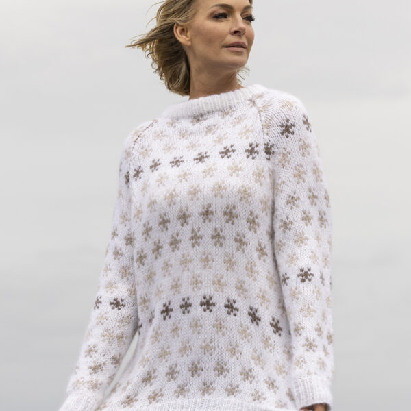 Strikkefasthet: 15 m glattstrikk i bredden på pinne nr 6 eller 7 måler ca 10 cm.