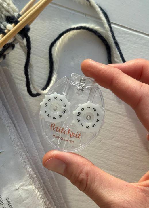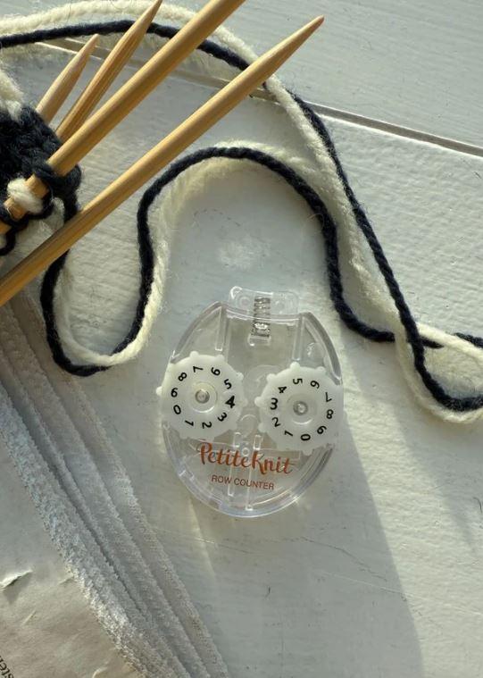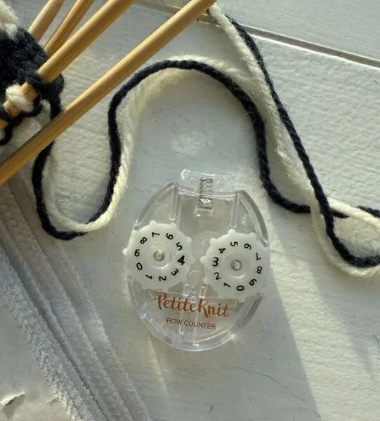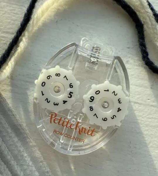 Trykk på toppen av telleren hver gang du har strikket en omgang, og nullstill ved å dreie på tannhjulene på siden.