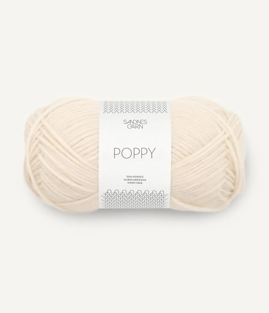 POPPY består av alpakkafiber som sammen med ull blir blåst inn i en bomullsstrømpe. Dette gir et mykt, lett og luftig garn.