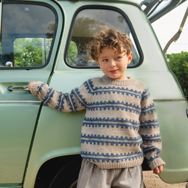 Ridge Sweater Junior i Double Sunday er en myk og varm genser med et flott tredimensjonalt mønster i Børstet Alpakka.