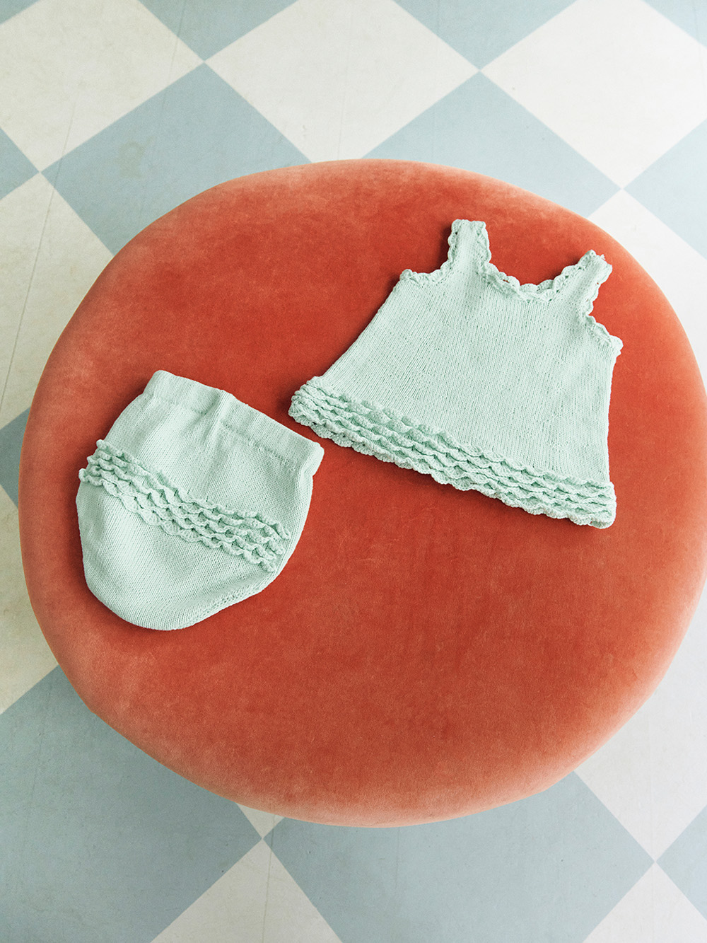 Oppskrift på Rosette Pants Baby og Rosette Bloomer medfølger.