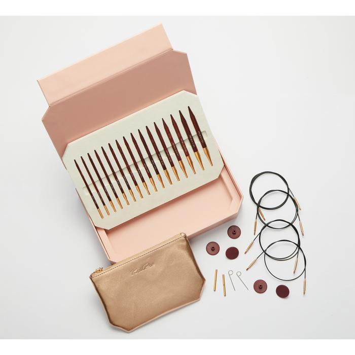 Symfonie Rose luksus pinnesett er en spesialutgave i mørklakkerte strikkepinner av bjørk. Disse utskiftbare strikkepinnene er fantastiske å strikke med og akkurat passe spisset slik at maskene glir lett på plass.