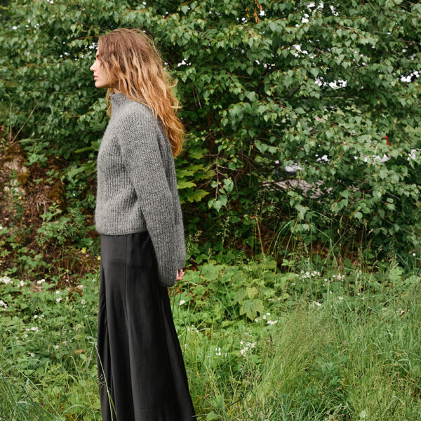 Tia Zipper Jacket i Sunday og Tynn Silk Mohair – en myk og moderne cardigan i halvpatent med glidelås. Strikkes ovenfra og ned med én tråd av hver kvalitet for et lett, lunt og eksklusivt uttrykk. Like tøff til kjole som til jeans eller sweatpants.