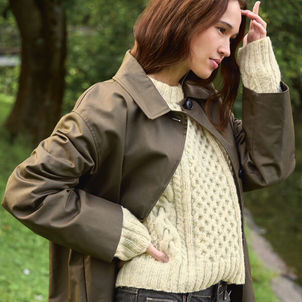 Wilbur Cable Sweater strikkes ovenfra og ned i Atlas. En vakker flettestrikket genser med spennende kombinasjon av struktur og fletter. Velg en størrelse større enn normalt for en mer oversized look.